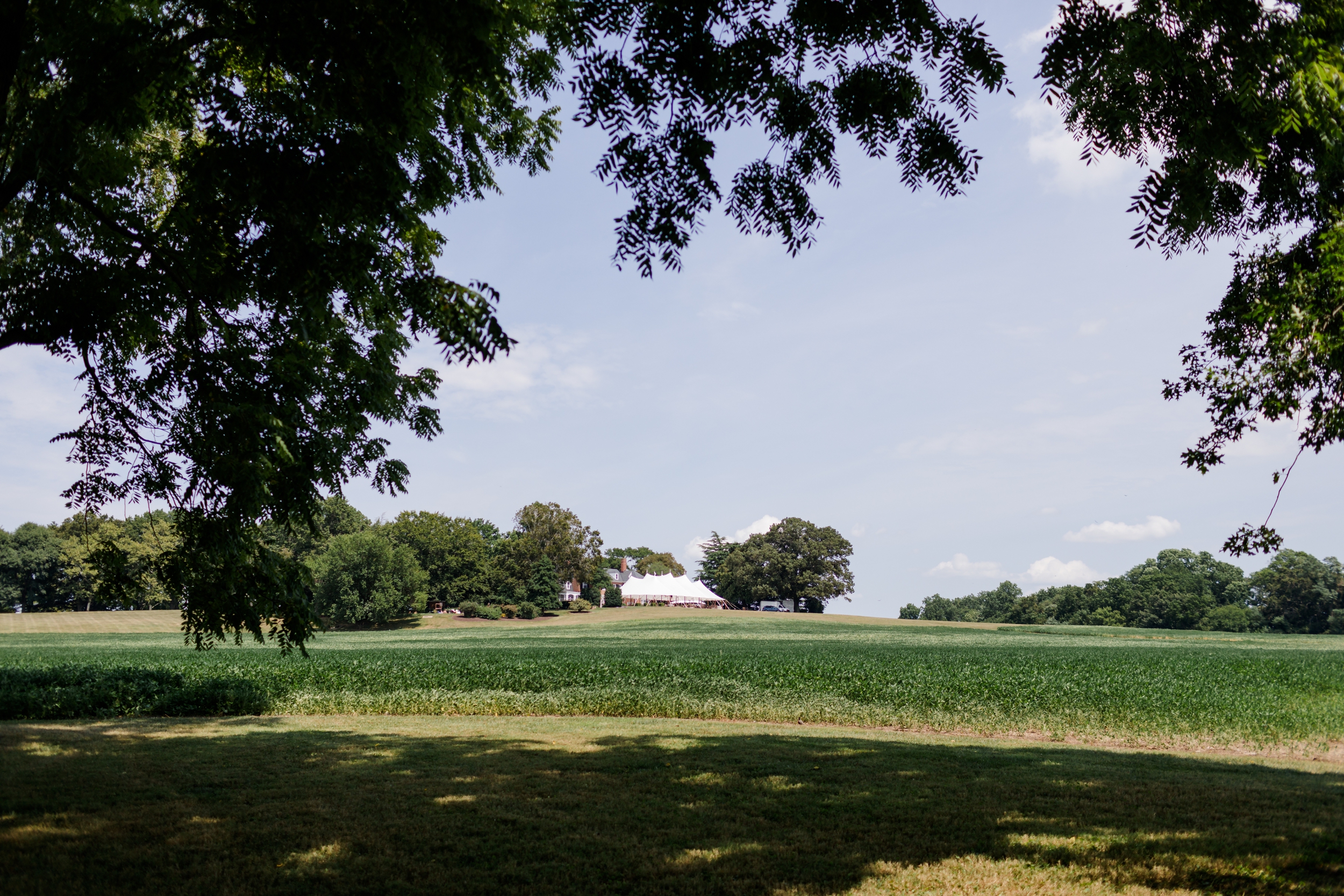 The ladies got ready at the manor house while the men got ready at the lake house. Guests were greeted at the ceremony site with champagne and shuttled from the ceremony site to the main tent by golf carts or shuttle bus. The florals were beautiful and lush, the band was incredible. Jordan had a first look with her maids as well as her father, and Kevin enjoyed the time honored tradition of digging up the bourbon - an old southern tradition believed to keep bad weather at bay on your wedding. Must be some truth to this because we were expecting storms all day and not one single drop came through!